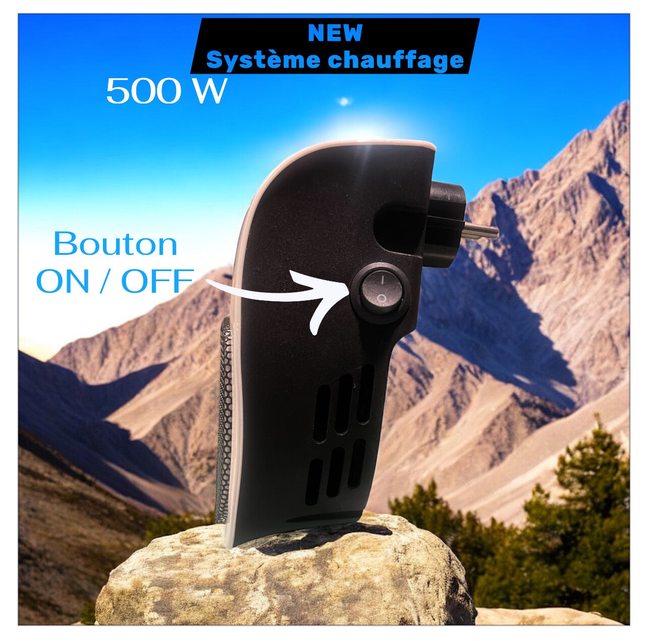 Le chauffage soufflant pour prise ne peut être utilisé qu'en orientation verticale.